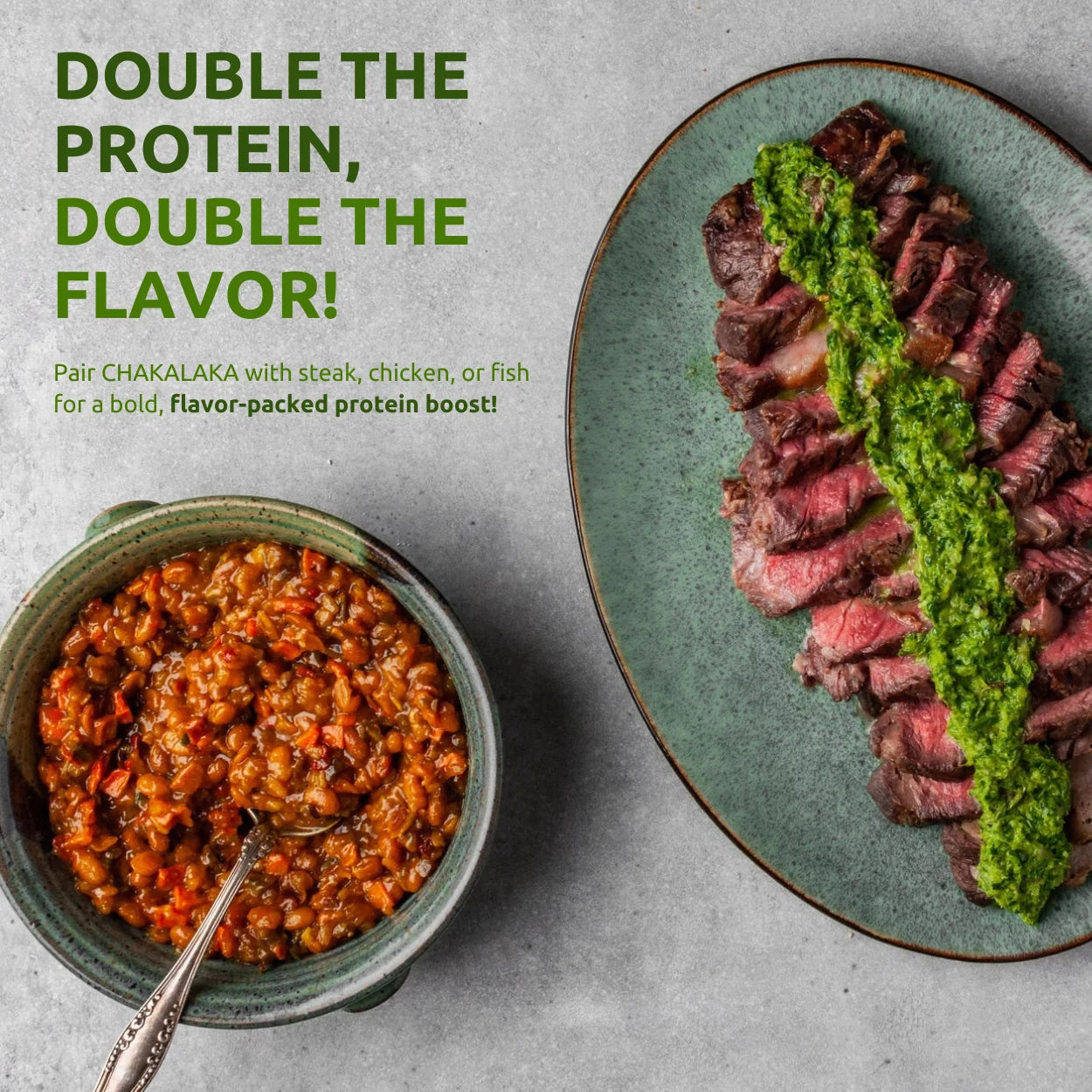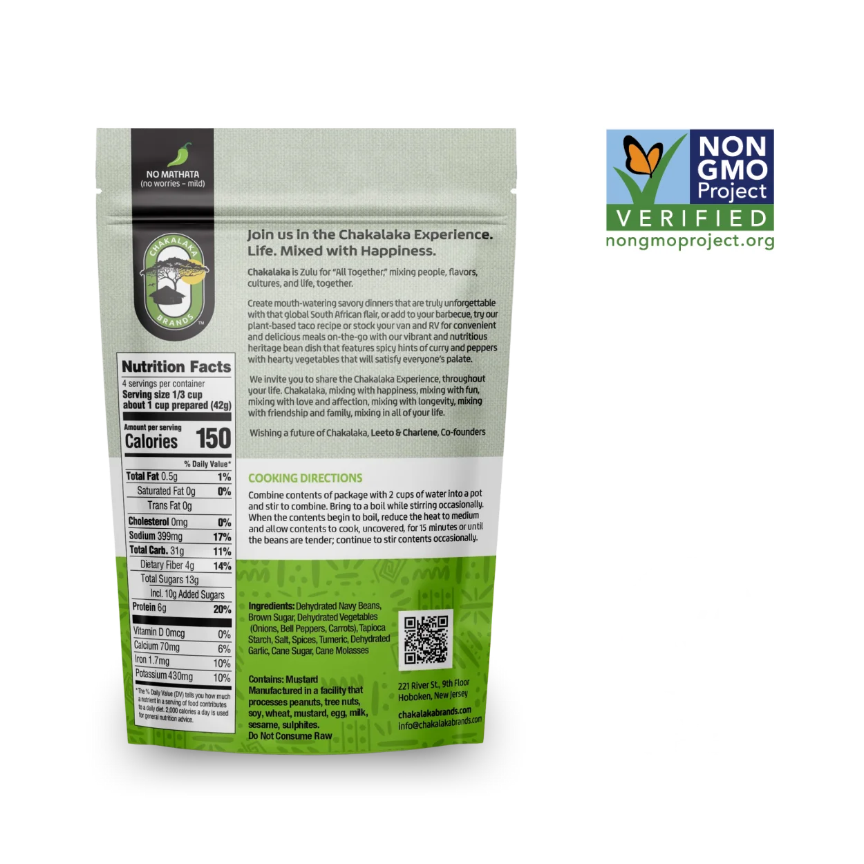 Experience the vibrant flavors of the world with our Mild (No Mathata) blend of Chakalaka. Our Mild flavor is a delectable heritage blend of beans and vegetables with a hint of spice. Chakalaka can be served as a plant-based entrée or side dish, or used to prepare a variety of [crowd-pleasing recipes]. Bring the flavors of South Africa to your table with this lively bean dish. Meant to be enjoyed together — prepare and share with your friends & family!